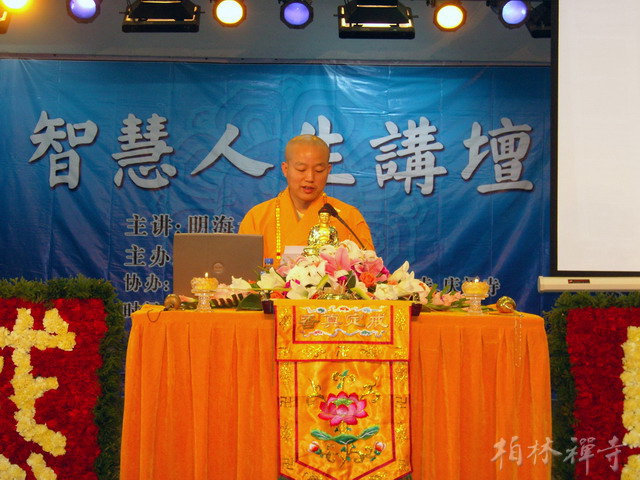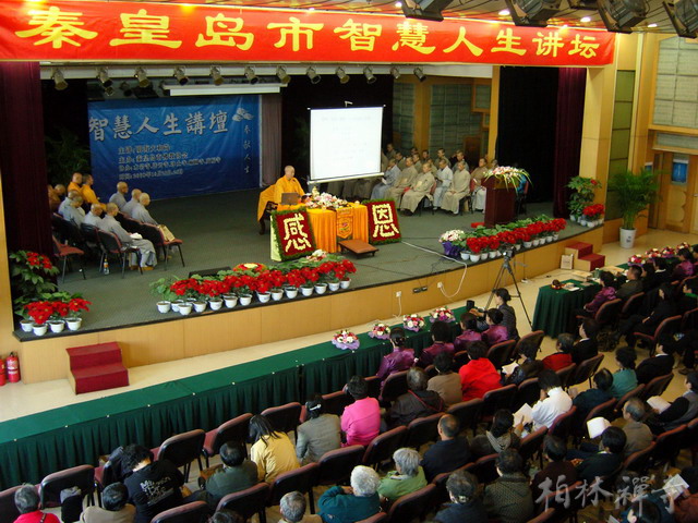 10月23~25日,明海大和尚应秦皇岛市佛教协会之邀,在秦皇岛国贸饭店会议厅讲解《佛说十善业道经》,共有八百余名信众参加了法会。大和尚以生活中的例子为引导,为大家开示远离十恶业、奉行十善业的道理,并特别提出当代佛教徒应以节约能源、减少温室气体排放作为一项重要的修行。法会结束后,秦皇岛佛教协会会长存海法师向大和尚赠送了纪念品,秦皇岛市民宗局局长李印林发表了讲话。