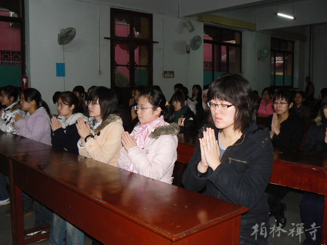 在寺期间,明海大和尚、明影法师与大家进行了座谈。同学们还体验了禅修、上殿、过堂等寺院生活