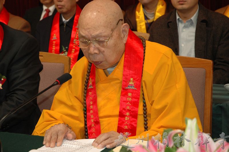 庆典由河北省佛教协会秘书长肖占军主持,省佛教协会会长净慧长老首先发表讲话。讲话中,他回顾了河北省佛教协会20年来的发展历程,感谢各级党政领导多年来对我省佛教事业的关怀和支持,感谢诸位护法居士的呵护与关爱,向与会大众介绍了我省佛教界的现状和今后发展的目标,并号召大家继承传统,回报社会,在下一个20年再创辉煌。