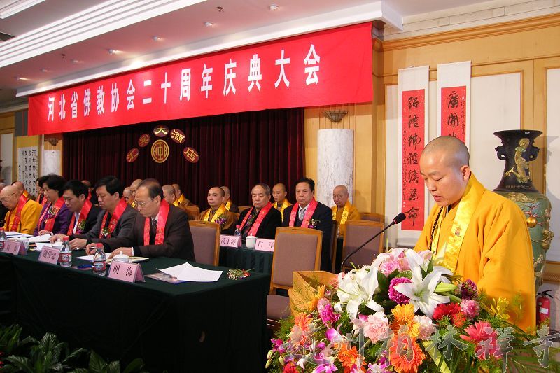 随后,河北省佛教协会常务副会长明海大和尚作了省佛协成立20周年工作回顾报告,刘永瑞部长、一诚长老、刘威副司长先后发表了讲话,庆典于上午11点结束。