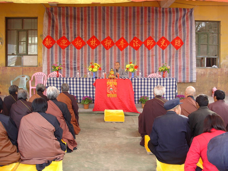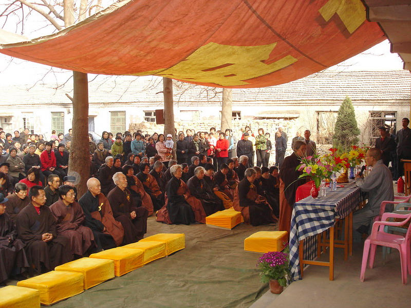 早晨八点半钟,利生法师一行三人,来到距县城20公里的谢庄乡田庄村,居士们早已排班等候在佛堂前,并在村小学门前的空地上布置好了讲经的会场。九点至十一点,明影法师为在场的200多名居士做了题为“愿心念佛”的演讲,建议居士们念佛要发菩提心,强调发菩提心是净土法门的重要基础,希望居士们能在生活中落实菩提心,孝敬父母,教育子女,以四摄法处理好家庭和邻里关系。午饭后,明影法师又就居士们提出的问题做了一个多小时的开示。