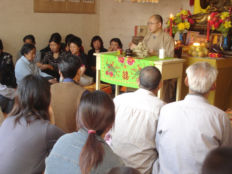郜家庄念佛堂坐落在村影剧院后面的平房里,常照法师在这里为大家作了两个小时的精彩开示。之后,常照法师和郜家庄念佛堂的发起人和组织者进行座谈,对念佛堂的进一步建设提出了指导意见。