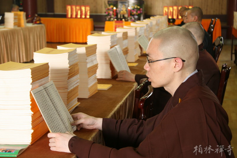 安居期间本寺常住四众弟子在文殊阁诵《大般若经》,每日上、下午各诵一卷,来寺信众可随喜参加。