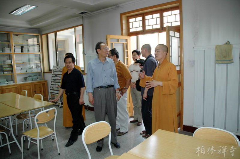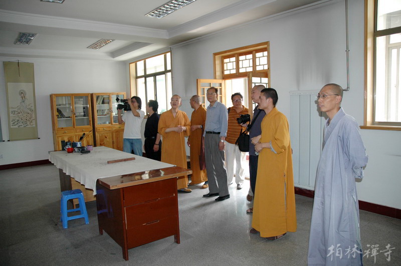 调研小组首先在明海大和尚的带领下参观了河北省佛学院的教室、礼堂、阅览室等硬件设施。午斋之后,调研小组和河北省佛学院领导、教师及学生代表在教务处进行座谈会,会上大家对佛学院统编教材问题进行了讨论。
