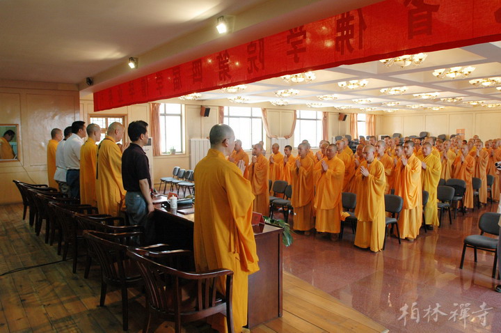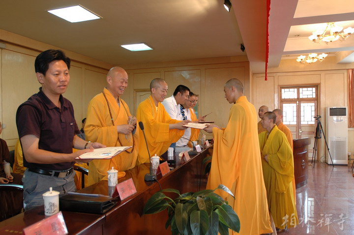 3日上午10点,河北省佛学院第四届学僧毕业典礼在佛学院礼堂举行,河北省民宗厅宗教一处处长张星,河北省民宗厅宗教一处副处长李泓、河北省佛教协会秘书长肖占军居士,河北省佛学院副院长史幼鹏、净慧老和尚、明海大和尚出席了典礼。李泓处长、肖占军居士、佛学院教师代表月悟法师、学僧代表能虚法师、明海大和尚、净慧老和尚先后发表了讲话。之后,诸位领导、法师为毕业学僧颁发毕业证书,并合影留念。