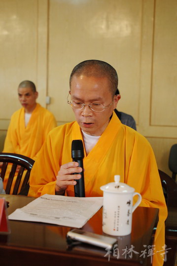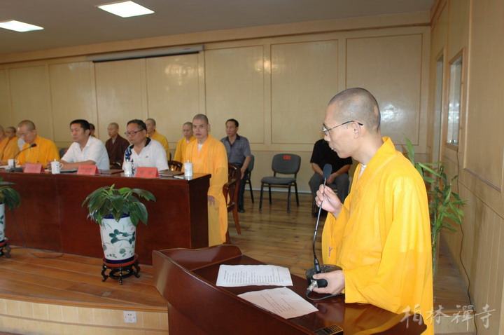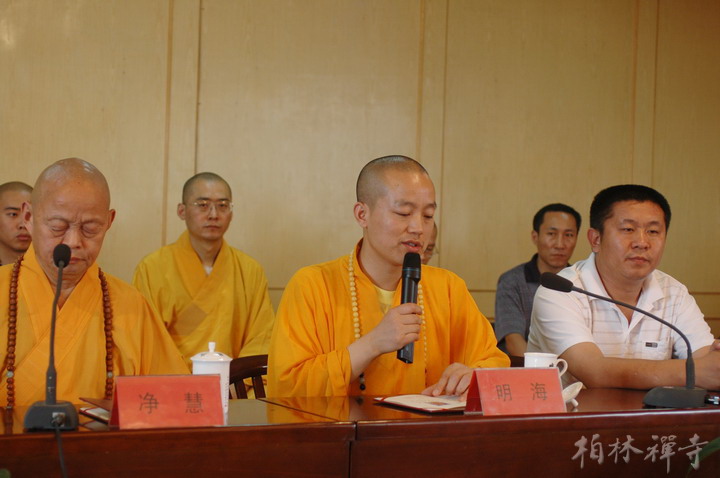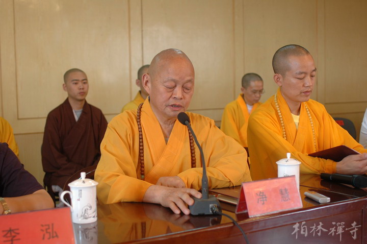 举行典礼的前一天晚上,净慧老和尚来到河北省佛学院,为即将毕业的学僧们作开示。在开示中,净慧老和尚再次强调了关于僧团建设的“四化工程”——僧团的道风建设要传统化,僧团的管理要律制化,僧团的弘法要大众化,僧团的生活要平民化。对四众弟子而言,还要强化四种意识——信仰意识、归属意识、神圣意识和责任意识。并且,老和尚还指出目前佛教界存在极为严重的四种“气”——俗气、阔气、官气、霸气,告诫大家一定要勤修三学,横扫四“气”。明海大和尚在总结时说:师父的观察和思考充满了忧患意识,一片婆心,希望佛学院的同学和常住的师父们能够领会,并在今后认真落实这些教导。