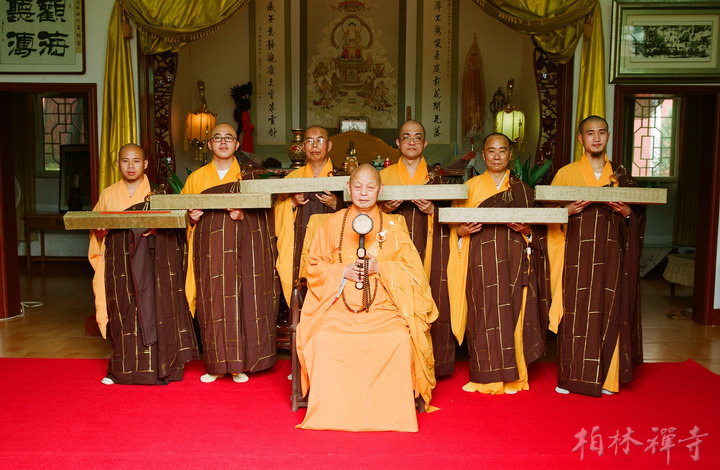 接下来,慧公老和尚将临济正宗,正法眼藏,佛祖源流,分别付嘱常柔素闻、常瑄静法、常佺持中、常得中慧、常津妙一、常臻妙行等六位禅人,并且殷切付嘱:望善自护持,勿令断绝。
