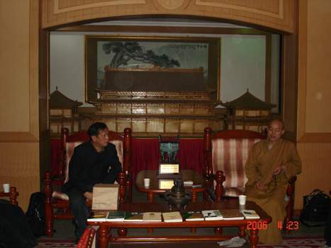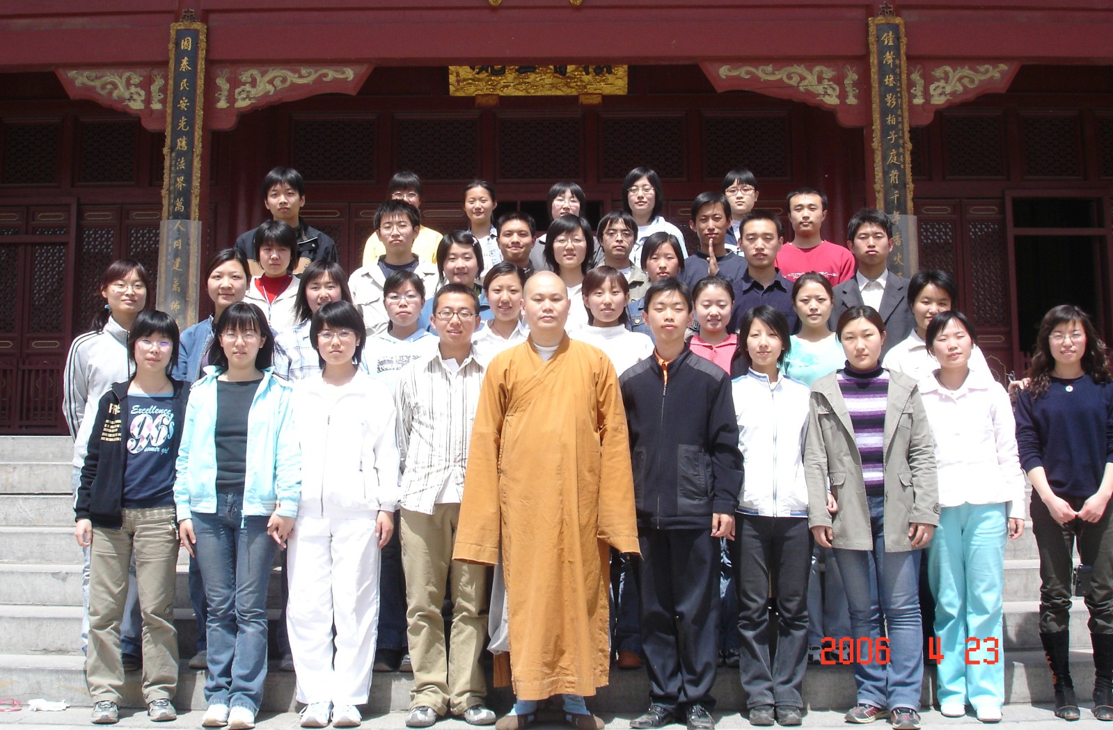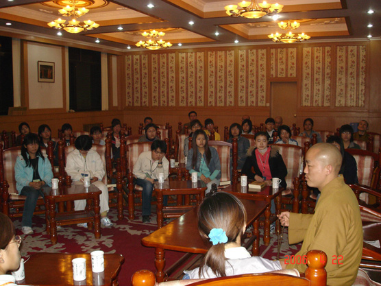2006年4月22日及23日,明海大和尚与来自河北、北京两地大专院校禅学社成员进行了座谈。明海大和尚在指月楼为禅学社同学进行了主题为“大学生生活的五个天平”的讲座,就有关大学生学业与爱情、未来与现在、他人与自己、情商与智商、走路(实践行动)与找路等五个方面进行了充分的探讨。指月楼内,清品赵州茶,心随禅师意。来自两地的禅学社成员等与大和尚进行了自由的交流。