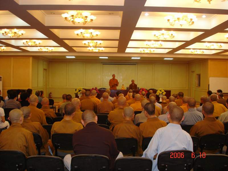 晚上7点30分,明性首座在佛学院礼堂做了关于修行用功的开示,常住僧俗大众300余人聆听,尽沾法喜。