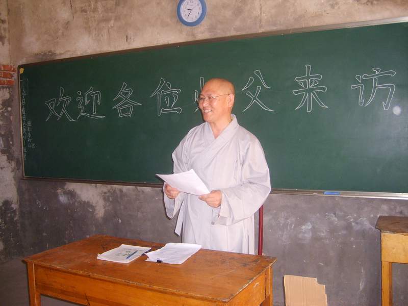 仁弘法师代表佛学院僧格养成班的师生们向孩子们赠送了国学经典诵读软件和数百元捐款,并发表讲话,他说:“我们为了了解众生苦来到这里,为了培养慈悲心来到这里。作为出家人,只有了解众生的苦,才能产生出离心,才能增加慈悲心,才能坚固修道心。我们要把众生的苦难作为我们修行的增上缘。来到这里,我们体验到常辉法师和社会各界人士的慈悲心,体验到你们勇猛精进,把佛陀教诲落实到当下的精神,我们一定要把这种精神带回去。”