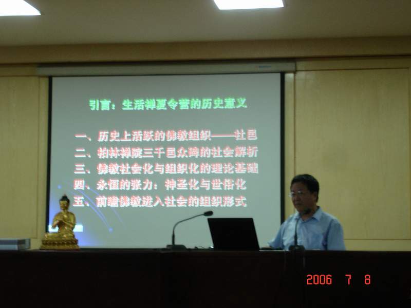 现任复旦大学哲学系宗教研究室主任的王雷泉教授8日晚在佛学院礼堂,作了两个多小时的报告,他对中国佛教现状作了分析,对佛教的发展提出了前瞻性的见解和建议。