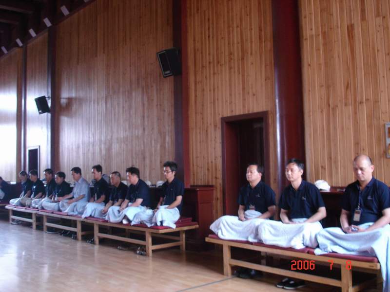 禅修团成员大多是上海企业界的中高层管理者,在短短的两天里,他们在这座北方的禅宗道场体验到了完全不同于世俗生活的佛教僧团严整的仪规,在吃、住、行等惯常的行为细节里深深感受了禅修生活的内涵。禅修团中一位中年人用餐后说,这是我平生第一次以恭敬心吃的一顿饭。