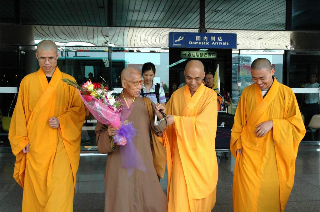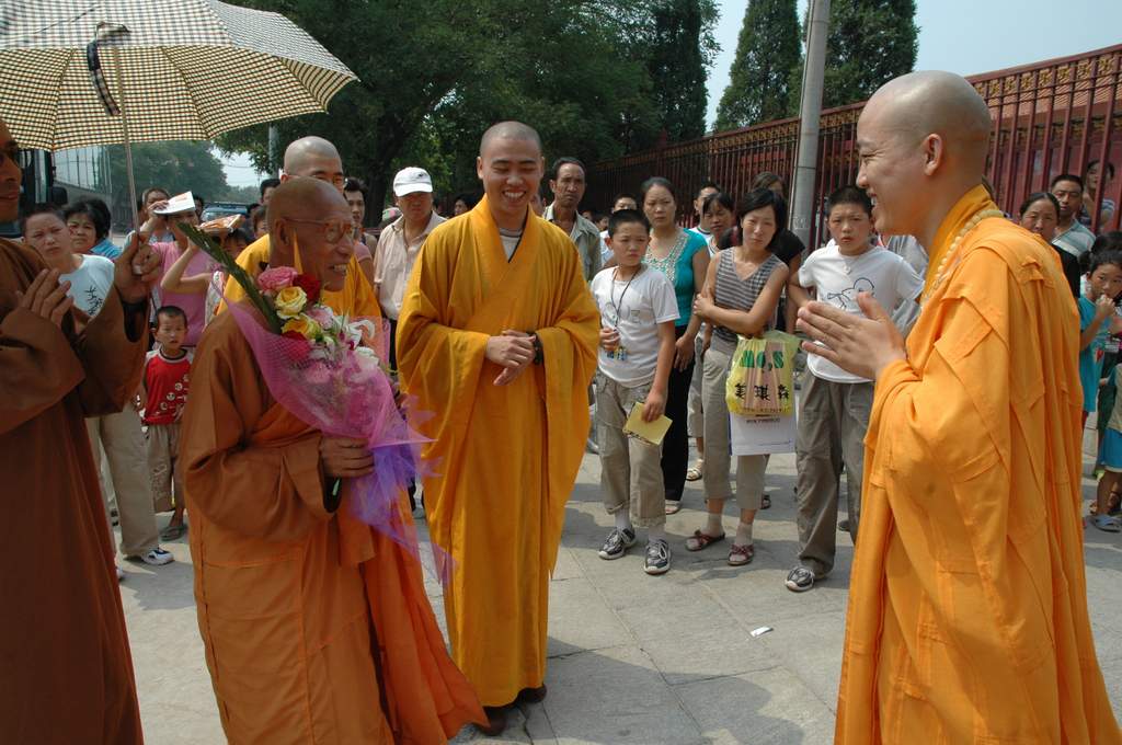8月16日中午1时许,9323彩集团方丈明海大和尚率两序大众在山门口隆重欢迎香港青年佛教协会会长畅怀长老一行。