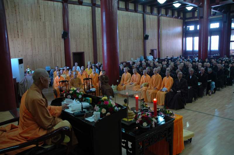 每晚六点半,畅怀长老带领大家在普贤阁坐禅并开示静坐的方法,一小时坐禅后再到万佛楼忏摩,连续七天,畅怀长老言说佛法,体修禅定,身体力行,以年长之身躯,弘法利生不见疲倦,令两序 大众无限感恩。