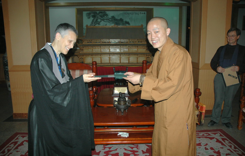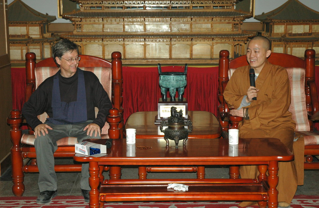 19日晚,参访团一行在指月楼与明海大和尚进行了两个多小时英文座谈。
