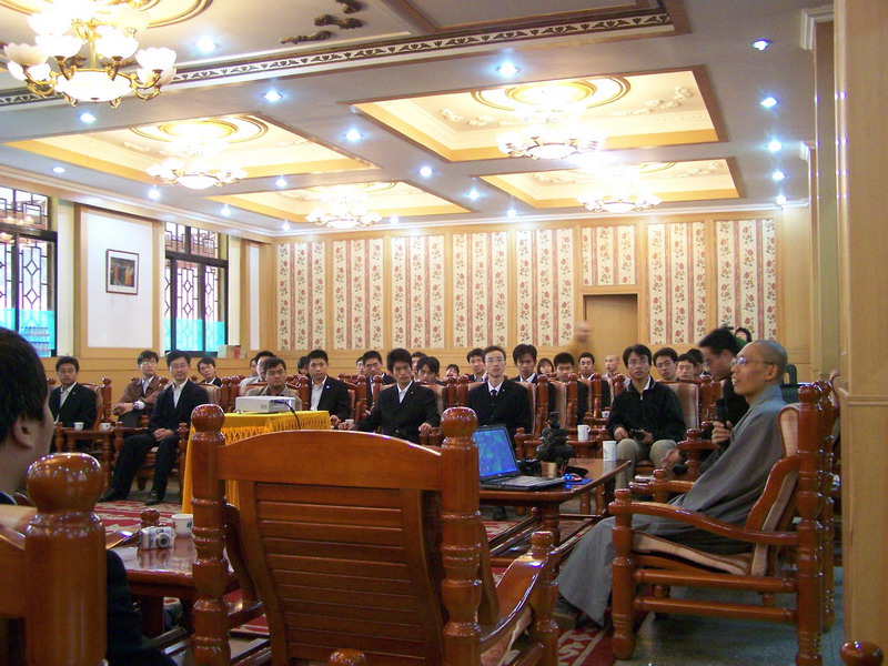 神哲学院学生还就佛学在中国发展的历史等问题请教法师,法师的解答,赢得阵阵掌声。师生们与明影法师进行了两个多小时的交流,座谈气氛和谐而融洽。