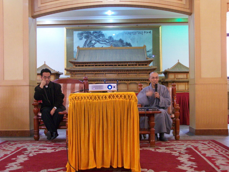 河北省佛学院教务长明影法师接待了神哲学院师生一行,并在指月楼客厅作了题为《佛教的天堂观》的演讲。他向师生们介绍了佛教的三界、六道、十二因缘……等佛教教义的基本内涵。神哲学院师生以热烈的掌声表达了感谢与敬意。