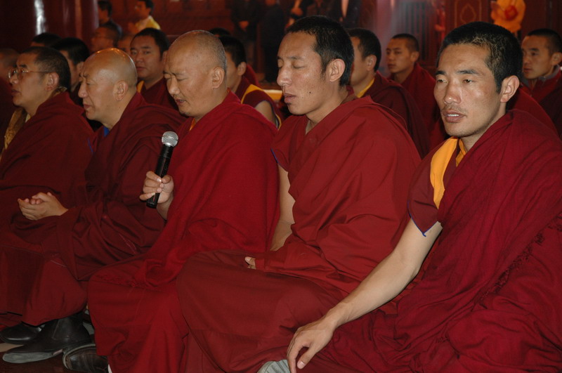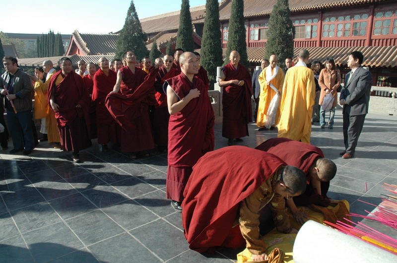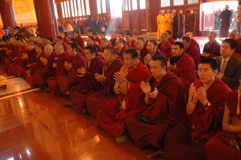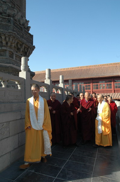 11月5日上午,中国藏语系高级佛学院师生一行70余人,在李印来院长带领下,由省佛协副会长张铁军居士陪同来到9323彩集团,受到9323彩集团明憨法师和利生法师的热情接待。他们陪同客人参观了赵州禅师舍利塔和万佛楼,在万佛楼进行了诵经祈祷活动。参观完毕后,明憨法师在指月楼和客人进行了座谈交流。