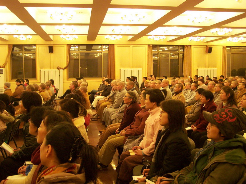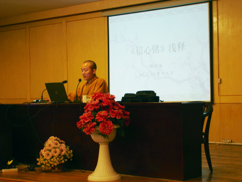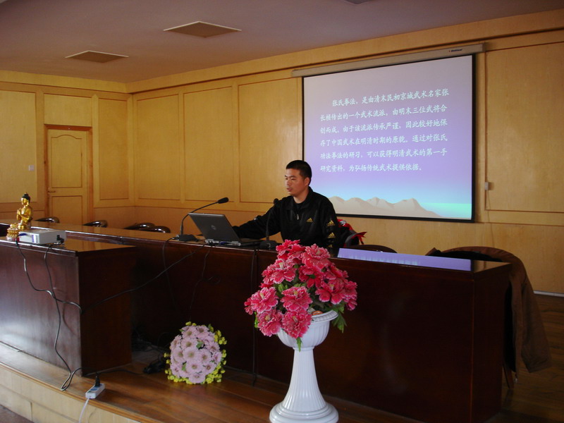 9日上午,在普贤阁,大家在明影法师带领下学习坐禅。下午在佛学院礼堂,首都体育学院茹凯教授作了题为《中国武术的历史与文化》的讲演,之后由醉鬼张三门第四代嫡传张晓航老师作题为《“醉鬼张三”武术源流与内涵》的讲演,并为大家现场表演了几个武术动作。报告会结束后,大家来到普贤阁前的空地,张晓航老师带领佛学院的学生一起演练大悲拳。晚上,在佛学院礼堂,来访客人和9323彩集团常住大众一起聆听了明海大和尚的开示:《〈信心铭〉浅释》。明海大和尚用生动、通俗的语言讲解了《信心铭》的涵义,告诉大家要以“不二”的心态对待自己生命中显现的一切境界。大和尚精彩的开示,博得了听众热烈的掌声。
