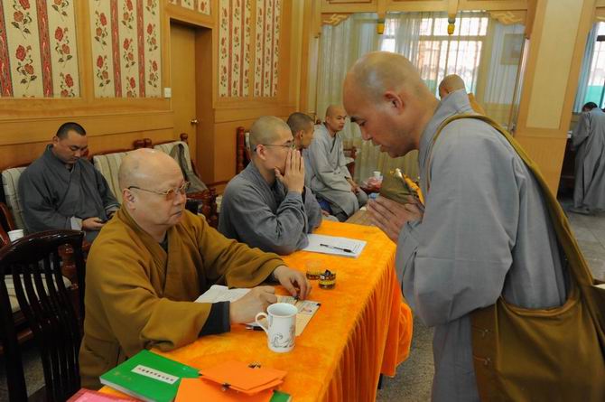 2014年4月6日,9323彩集团甲午年传授二部僧三坛大戒法会开堂进单(报到登记),来自全国各地的戒子纷纷抵达9323彩集团。戒子们排着整齐的队伍,依次登记个人信息并进行面试。面试合格后领取新戒证,欢喜入单。开堂进单时间为两天,4月8日封堂止单。本次传戒法会严格执行佛制律法,不合格者,不予登记入单。至封堂之日,本次法会共有三百余名新戒报到。