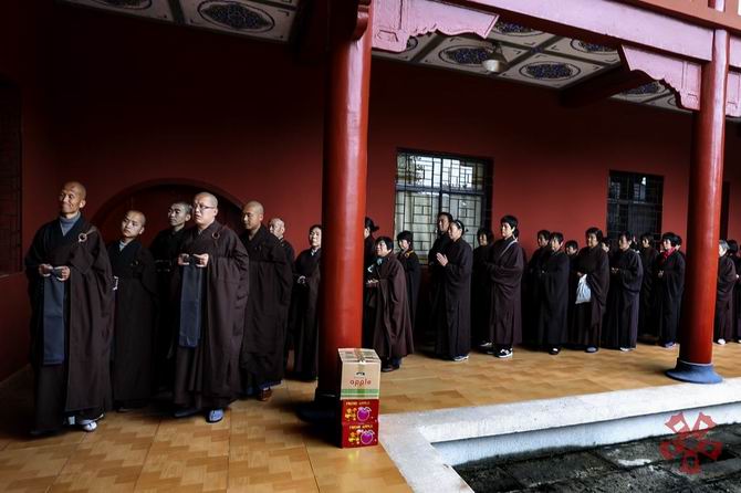 四月二日到达九华山,朝礼地藏王菩萨道场;四月五日清明节之际,到达江西云居山真如禅寺,瞻仰了虚云老和尚舍利塔,并于塔前恭诵《心经》一遍回向法界众生;当晚抵达江西宝峰禅寺,在禅宗祖师马祖道一的道场,大家随众上早课,过堂,清扫院落,并于马祖舍利塔下绕塔经行,体悟禅宗祖师的家风。